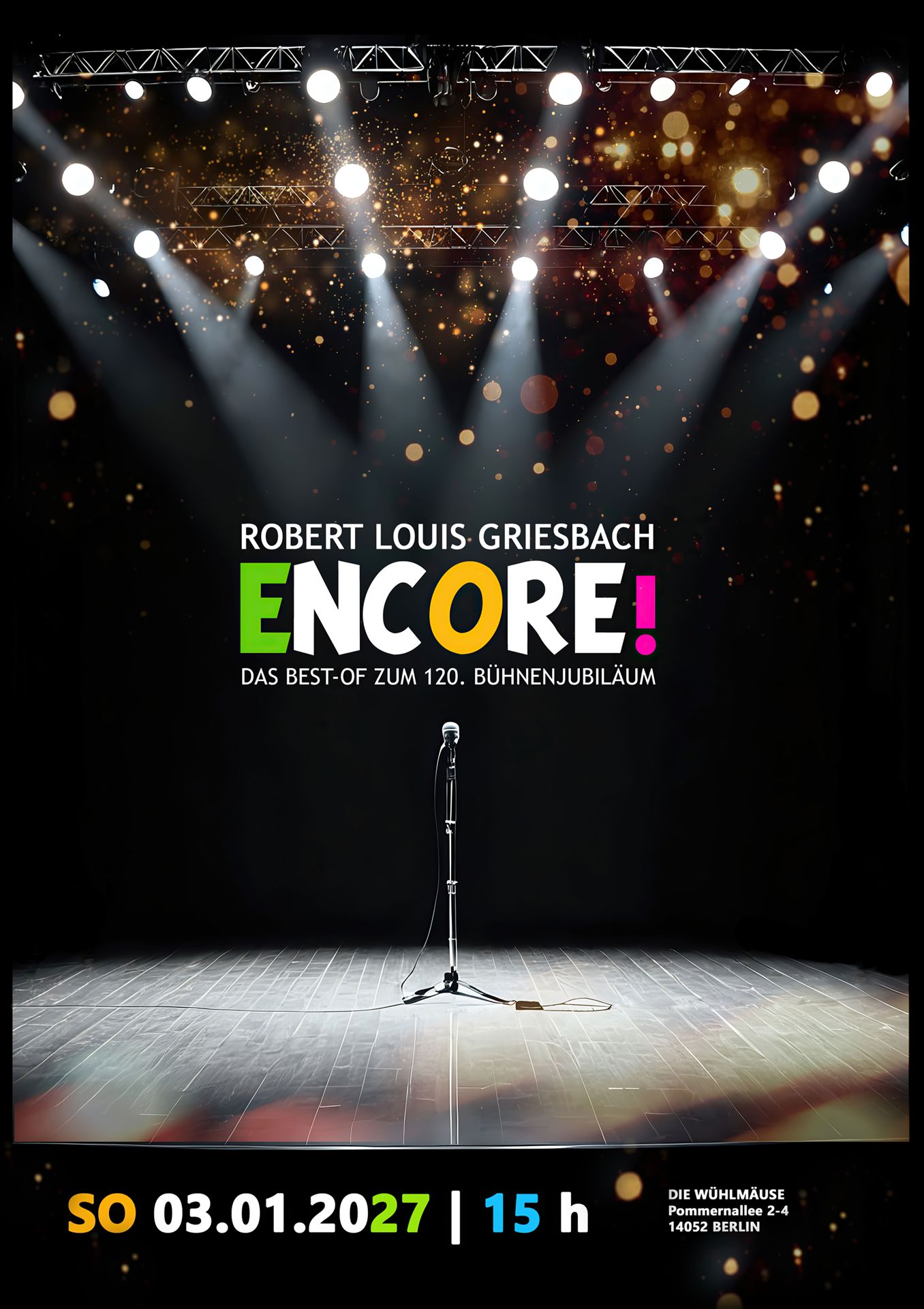 Nach 120 Jahren, gefühlten 7000 Pointen, 48 legendären Klassikern und mindestens drei Brillen, die bis heute als vermisst gelten, ist es wirklich so weit: Robert Louis Griesbach spielt und singt all seine Comedy-Klassiker ein allerallerletztes Mal auf der Bühne der Wühlmäuse. Zusammengekehrt, abgestaubt und mit theatralischem Ächzen erneut auf die Bühne gewuchtet.